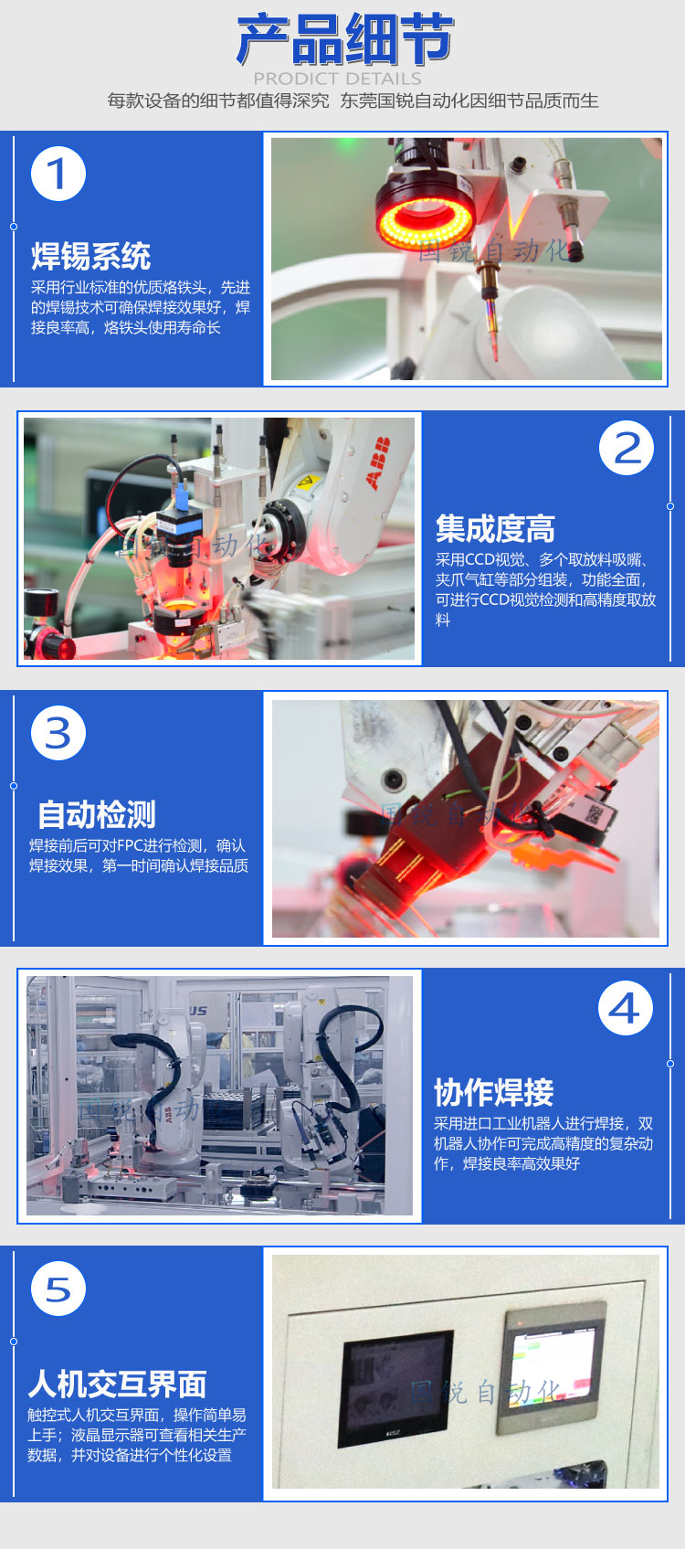 CCD自動識別,實現(xiàn)雙機器人完美協(xié)同作業(yè),高柔性,高精度,具備自動找尋焊點,實現(xiàn)精準焊接。