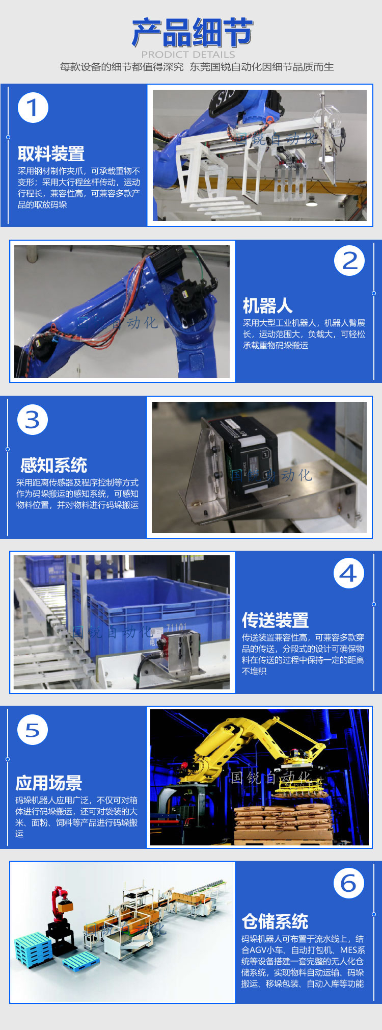 安裝方式:落地式機(jī)器人碼垛系統(tǒng),智能、高效,具有靈巧輕便的機(jī)械機(jī)構(gòu)及靈活的作業(yè)動(dòng)作。