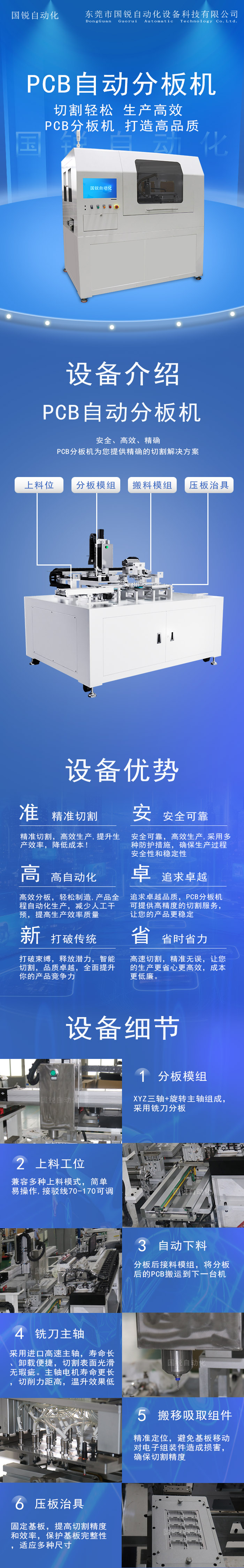 4、XYZ三軸+旋轉(zhuǎn)主軸組成分板模組,采用高速主軸,超大轉(zhuǎn)速、大扭矩;