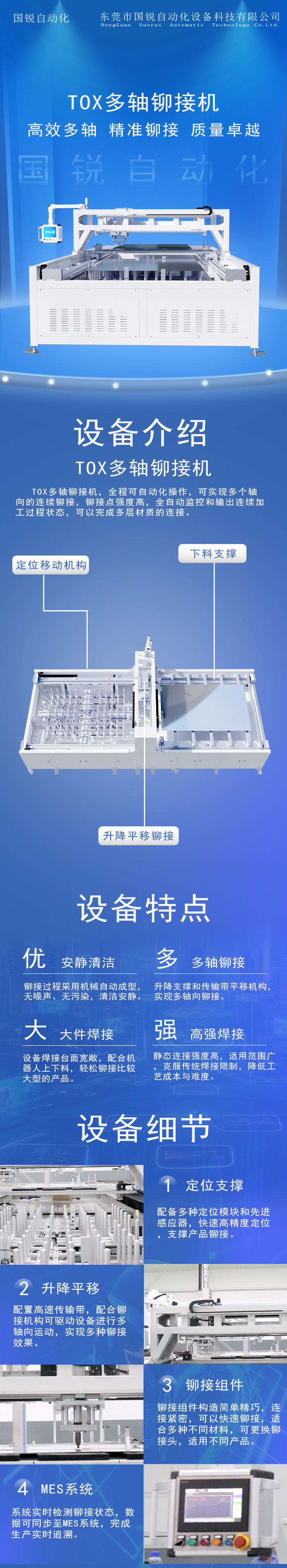 TOX連接對板件表面無任何要求,連接點處板件表面原有的鍍層、漆層不受損傷。連接過程自動化程度高,可單點或多點同時連接,并能進行無損傷連接強度檢測及全過程自動監(jiān)控,生產(chǎn)效率極高。