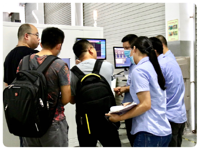 此次到訪我司的還有英恒電子質(zhì)量主管、硬件主管、結(jié)構(gòu)工程師和測試工程師。我司總經(jīng)理和業(yè)務(wù)經(jīng)理帶領(lǐng)他們參觀公司設(shè)備,并對已投產(chǎn)的雷達(dá)自動(dòng)組裝檢測生產(chǎn)線、雷達(dá)暗箱、車載攝像頭組裝檢測生產(chǎn)線進(jìn)行詳細(xì)介紹。