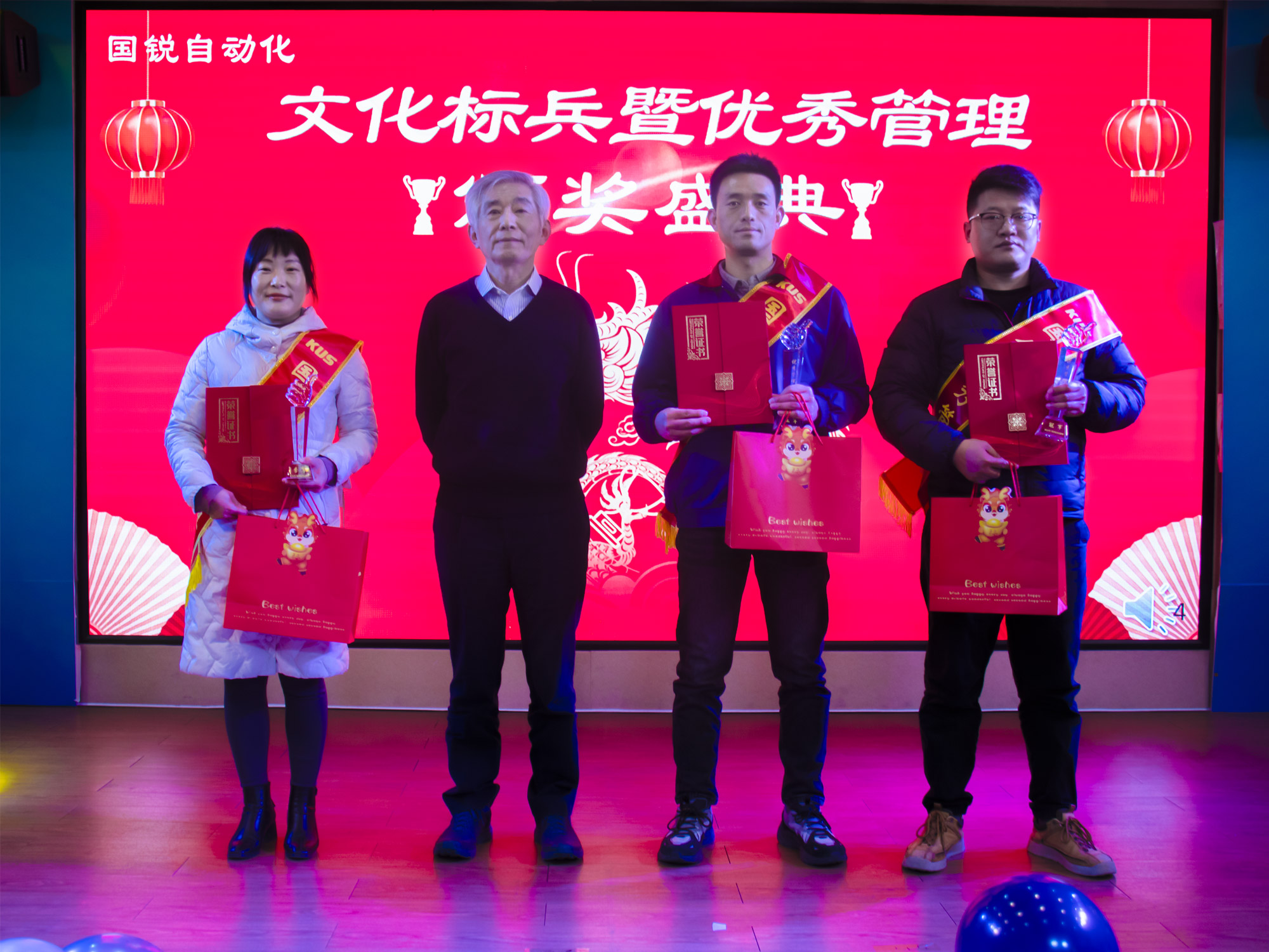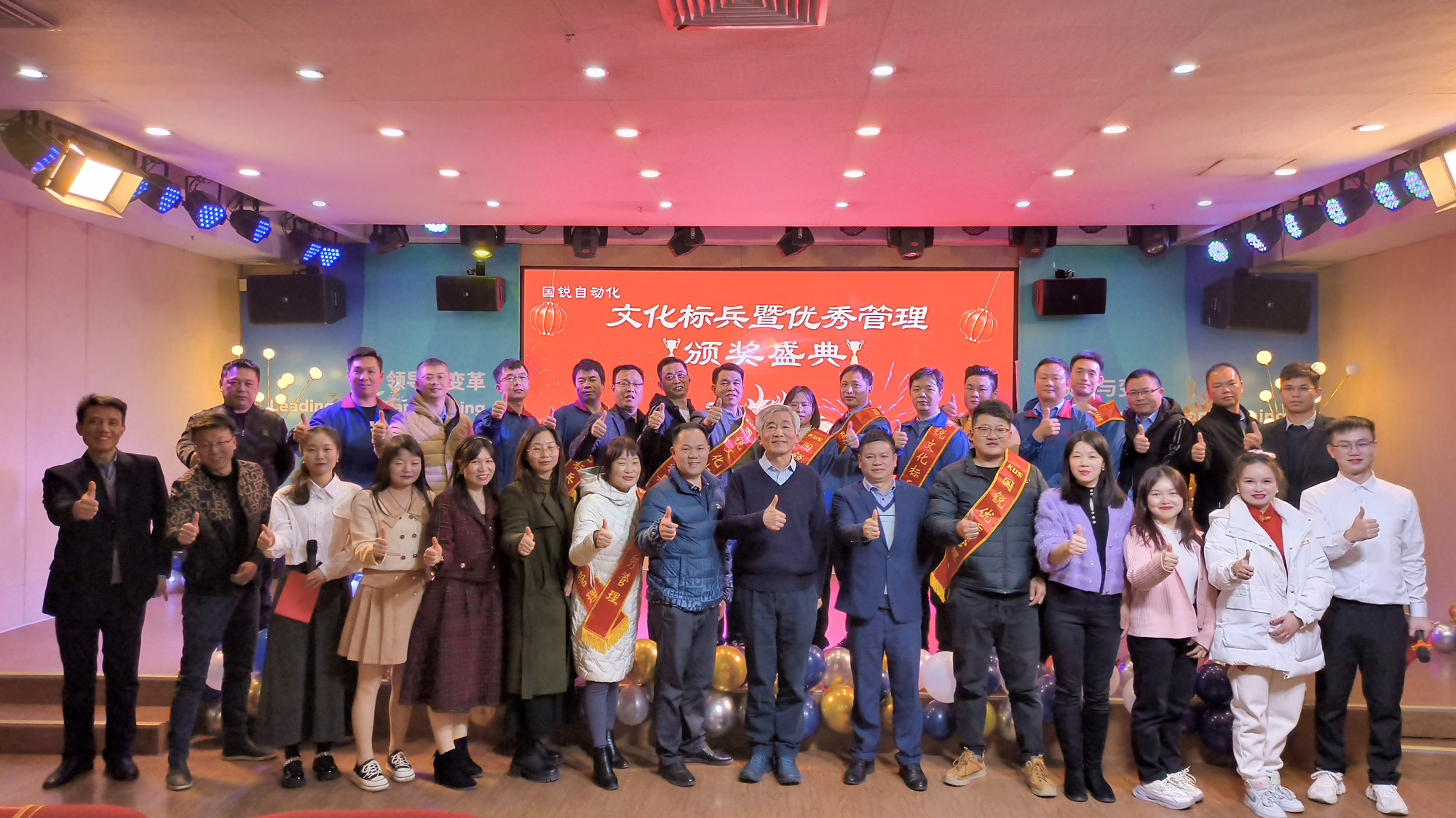 2024年1月27日,國(guó)銳自動(dòng)化第三期“文化標(biāo)兵暨優(yōu)秀管理”頒獎(jiǎng)盛典在公司多媒體會(huì)議廳隆重舉行,這不僅是對(duì)過(guò)去一年中表現(xiàn)卓越的標(biāo)兵以及杰出管理精英的榮譽(yù)表彰,更是一場(chǎng)充滿(mǎn)正能量、展望美好未來(lái)的盛會(huì)。在這個(gè)特別的日子里,我們向那些勤奮工作的標(biāo)兵以及杰出管理精英表示最崇高的敬意。他們以平凡崗位書(shū)寫(xiě)不凡業(yè)績(jī),用實(shí)干鑄就成就,激勵(lì)所有人砥礪前行。集團(tuán)顧先生在百忙之中親臨現(xiàn)場(chǎng),為文化標(biāo)兵以及優(yōu)秀管理進(jìn)行頒獎(jiǎng)。