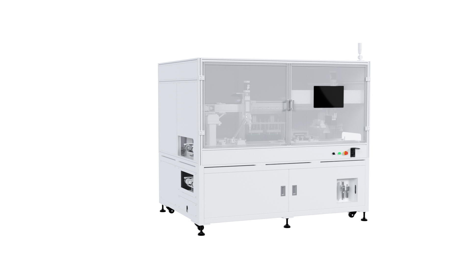 國銳自動化全自動點膠機(jī),也稱為涂膠機(jī)、滴膠機(jī)、打膠機(jī)、灌膠機(jī)等,配備壓電噴射閥,這一組件使得設(shè)備能夠快速且高精度地完成點膠作業(yè)。此外,設(shè)備還配備了CCD視覺識別系統(tǒng),能夠自動識別并準(zhǔn)確定位點膠位置,確保點膠的準(zhǔn)確性。在線式雙導(dǎo)軌的設(shè)計以及XY軸采用的直線電機(jī),提高設(shè)備在運行過程中的重復(fù)定位精度和穩(wěn)定性。