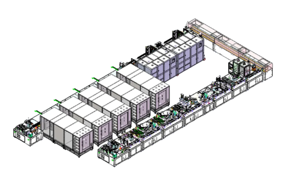 線體采用U型線布局,根據(jù)需要可配置多臺老化測試設(shè)備和暗箱EOL測試設(shè)備,滿足毫米波雷達在產(chǎn)線中的在線組裝及測試。U型的產(chǎn)線設(shè)計,降低產(chǎn)線的占地面積,便于產(chǎn)線在車間中布置。模塊化產(chǎn)線,便于維護和保養(yǎng),根據(jù)產(chǎn)品特性可設(shè)計多種柔性載具和夾治具,使產(chǎn)線兼容多款產(chǎn)品的組裝和測試,為企業(yè)減少設(shè)備購置成本。